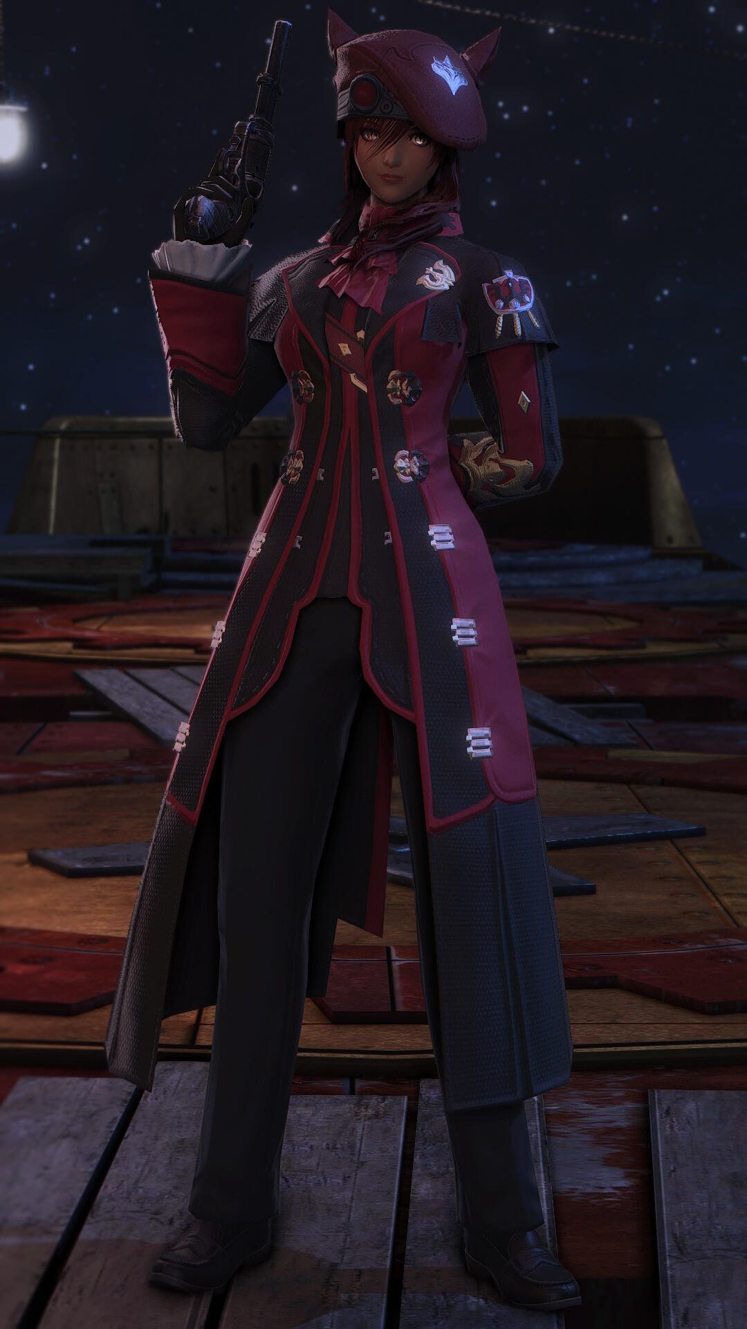 Skye Ume is the exact opposite of what one would expect from Maelstrom’s Finest. Cutthroat, sleazy, and just a little lazy, the Crimson Cat can oft be found with her feet kicked up and a drink in her hand; especially if she’s meant to be on duty. Despite her inclination to let vices take hold, the siren song of adventure is too strong to resist. Of course, only a fool would go out alone. Any adventurer worth half their weight in gil understands the importance of allies, meaning Skye is keen on seeking out new companions. Putting both leisure and appearance aside, the Leftenant is proficient in her craft. Battlefield prowess comes naturally, and she always works to ensure efficiency in a fight.The Miqo’te’s past is shrouded in mystery, starting with a strange surname that lacks any real significance. What’s even more interesting is that - despite being a Seeker - Skye carries no markings nor traditions that are common with her kind. Should this odd veil over her history prompt one to dig deeper into the Officer’s origins, all there is to be found are service records and an extensive medical history. Though, that beckons a single question: Why concern yourself with events long passed? It’s best if you just kick up your feet, share a drink, and play a hand of cards with the Leftenant. Who knows? You may just end up making a friend out of the Crimson Cat.